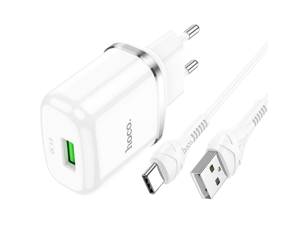 Hoco nabíjecí set adaptéru QC3.0 a kabelu USB-C (EU) bílá